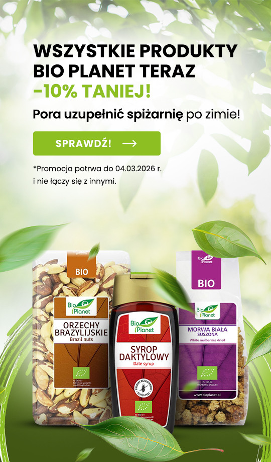 Na naszych Biozdrowych półkach znajdziesz kasze, mąki, ryże, makarony, gotowe mieszanki do wypieków z czystym składem, zdrowe tłuszcze jak np. oliwa. Ale mamy też bogatą sekcję produktów z kategorii słodycze, z czystym i bezpiecznym składem. Mamy wiele naturalnych przypraw i ziół, które zawsze się przydają w kuchni, podczas gotowania. Znajdziesz u nas również sekcję z gotowymi produktami, tzw. gotowcami. To jednak starannie wyselekcjonowane produkty, które mają nieskazitelny skład i można je spożywać bez obaw o wprowadzanie do organizmu zbędnych substancji. Do tego znajdziesz u nas bio owoce, warzywa i mięso bez azotynów i azotanów. A także prawdziwe miody od sprawdzonych producentów, niektóre w ciekawych aranżacjach smakowych - np. z dodatkiem owoców czy innych ciekawych urozmaiceń.