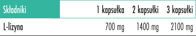 • Czysty skład bez dodatków – tylko L-lizyna i otoczka kapsułki roślinnej (hydroksypropylometyloceluloza), bez konserwantów, barwników i wypełniaczy