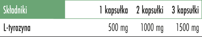 • L-tyrozyna 500mg (aminokwas pochodzenia roślinnego otrzymany w procesie naturalnej fermentacji)