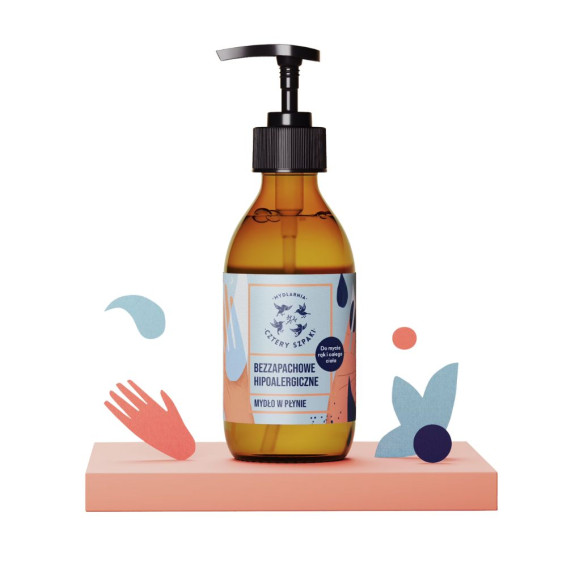 Mydło hipoalergiczne w płynie to minimalna receptura, bez drażniących składników i olejków eterycznych. Jest idealnym wyborem dla osób poszukujących mydła bezzapachowego hipoalergicznego - skutecznego i subtelnego. Formuła zapewnia łagodne oczyszczanie, nie naruszając naturalnej bariery ochronnej skóry.