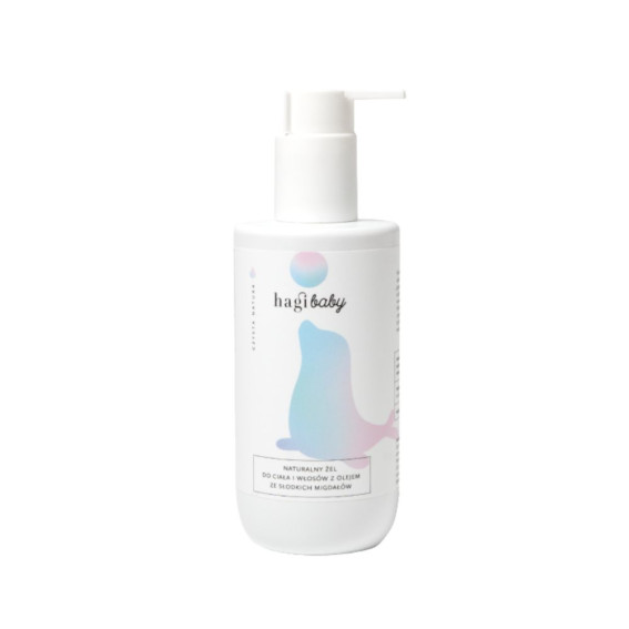 Żel do mycia ciała dla dzieci Hagi to naturalny produkt przeznaczony do codziennej pielęgnacji delikatnej skóry i włosów najmłodszych. Formuła żelu łagodnie oczyszcza, nie podrażnia i pozostawia skórę miękką oraz nawilżoną. Zawarte w produkcie składniki aktywne, takie jak olej ze słodkich migdałów, aloes i d-pantenol, wspierają regenerację skóry i pomagają utrzymać jej naturalny poziom nawilżenia.